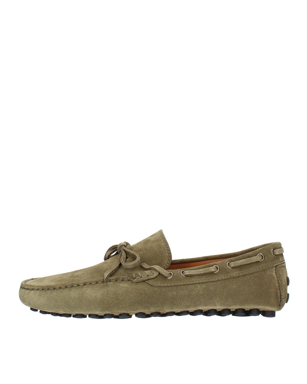 Moccasins model DU3151PORTUF106NV00 by DOUCAL'S made of suede. Logo embossed rubber outsole. Logo embossed leather insole. Color: green