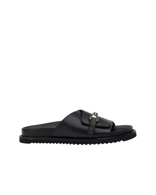 Doucal`s Leather Sandal with Metal Detail offers a sleek design perfect for warm summer evenings. Crafted in Italy, these sandals feature a gold-tone horsebit detail for a touch of elegance. Key attributes: Black | Leather | Gold-tone horsebit detail | Color: black