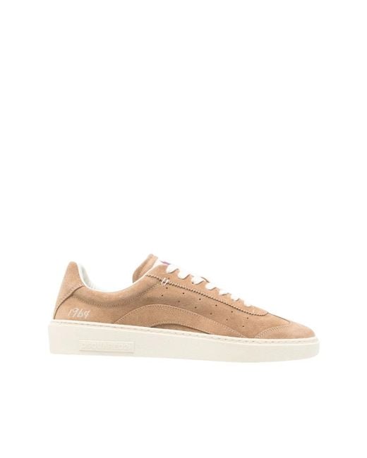 Dsquared 2 Rider Sneakers combine a vintage-inspired low-top silhouette with leather construction and a trail-runner rubber sole for everyday wear and reliable traction. Key attributes: Brown | Leather | Trail-runner rubber sole | Durable construction for everyday wear | Lace-up closure | Low-top silhouette | Rounded toe | Perforated and hand-distressed finish | Contrasting side panel and heel tab | "1964" detail on heel | Composition & care: Upper: 100% calf leather | Lining: 40% cotton, 10% polyester, 50% calf leather | Sole: 100% thermoplastic rubber