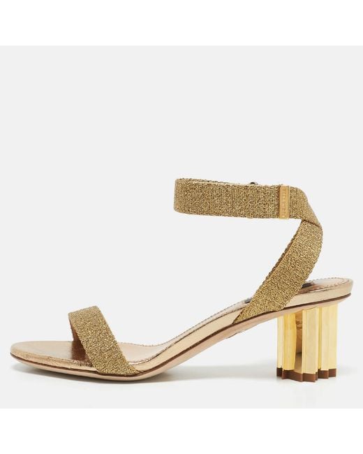 Women's Natural Lurex Fabric Ankle Strap Sandals
