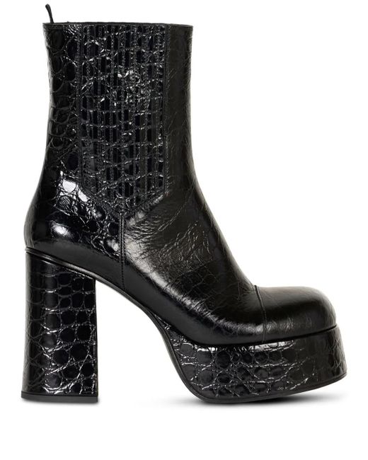 Black leather embossed crocodile effect elasticated side panels pull-tab at the heel platform sole high block heel slip-on style Size: 36. Gender: Female. Material:Calf Leather/Calf Leather/Calf Leather. Color: black
