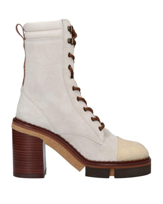 Women's Natural Ivory Ankle Boots Leather