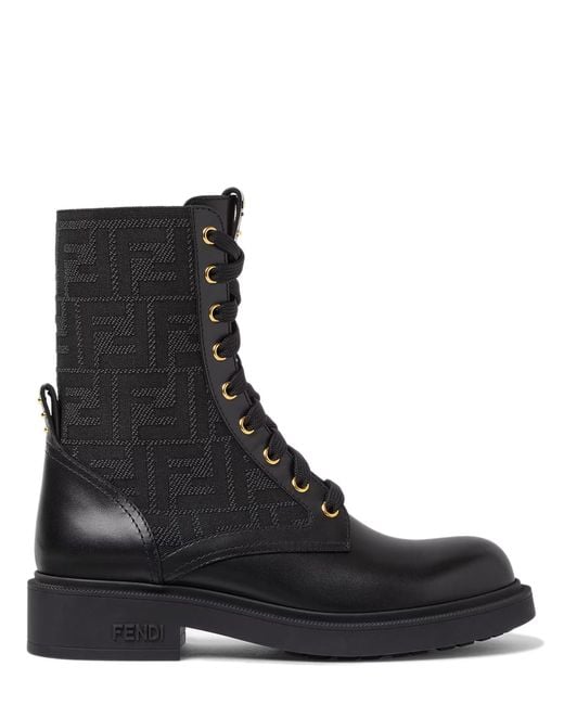 - Ff Motif Leather And Stretch Fabric Boots With 35 Cm Heel