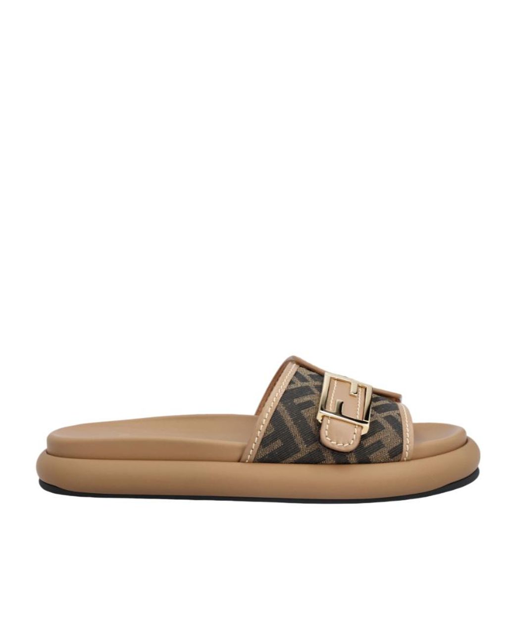 Broadband flat sandals with FF Baguette decorative buckles. Edges are decorated with exposed stitching. Finish metal parts.