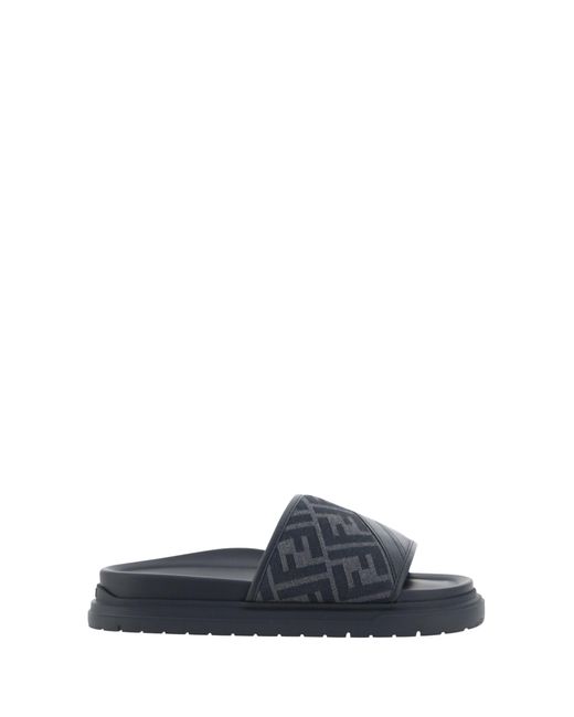 The slide sandals by fendi are an elegant interpretation of comfort signed by the celebrated italian fashion house. featuring a jacquard front strap that sports the iconic ff logo repeated, this shoe embodies the brand's distinctive and refined style. the flat sole ensures a comfortable and casual walk, while the sockliner, embellished with the press-on logo, adds an extra touch of exclusivity. perfect for completing summer looks with a classy detail, it combines practicality and luxury in one accessory. Composition: 80% % Fabric, 20% % Rubber