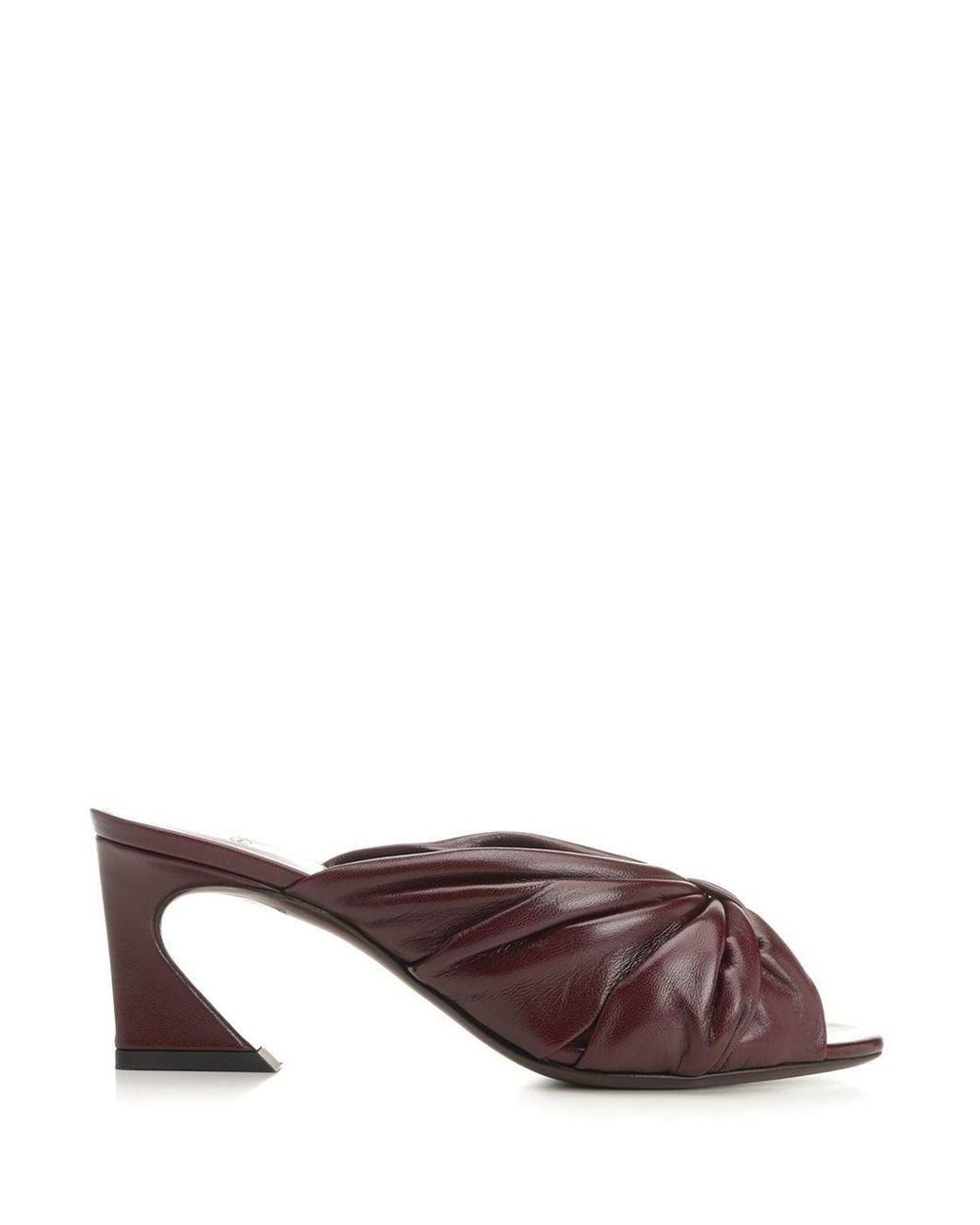 Slides in shiny nappa leather by Fendi, with almond toe and double band gathered in a bow, high heel with a contoured line covered in tone-on-tone nappa leather and completed by a gold metal bar with engraved Fendi logo.T. 70mm 100%AGN+Interno:100%VIT Made in: IT SKU: 8R8883AYFAF0TFG Our Products Are 100% Genuine. In All Cases We Stand By The Authenticity Of Every Product Sold On Our Site.