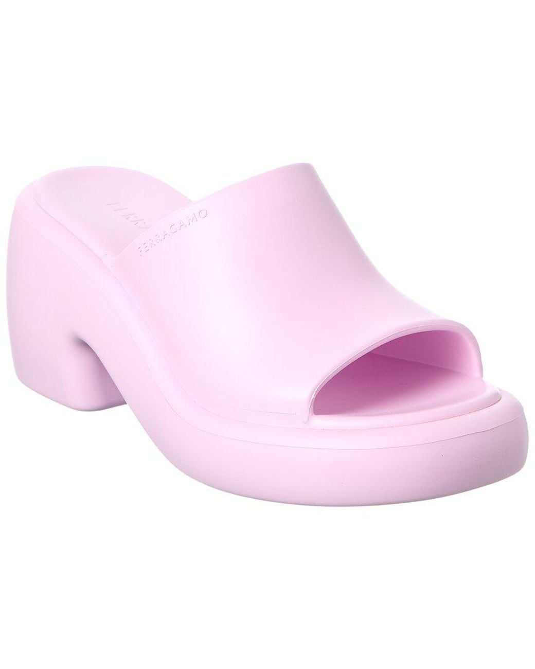About the brand: The Gancini, The Vara, and all the icons in-between. Please note: B indicates narrow sizing; C indicates standard sizing; D indicates wide sizing; M indicates medium sizing. Made in Italy Deva Sandal in bubblegum pvc Lightly padded insole Man-made sole 3.75in heel 1.25in platform Please note: All measurements are approximate and were taken from a size 6 M; slight variations may occur. Our products are 100% genuine. In some cases we purchase merchandise from trusted independent suppliers and not directly from the brand owner. In all cases we stand by the authenticity of every product sold on our site. Color: pink