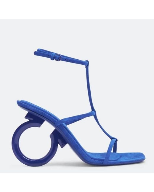 Women's Blue Ferragamo Elina T-Strap Gancini Sandals
