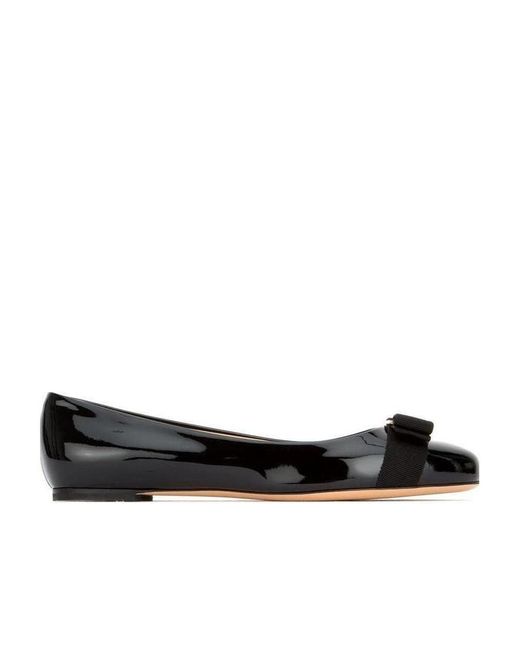 Ferragamo Varina Leather Ballerina Shoes - Black