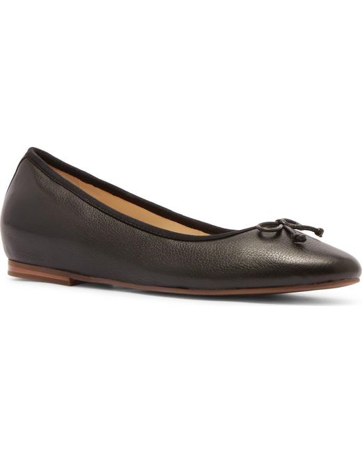 A neat bow decorates the almond toe of a classic desk-to-dinner ballet flat featuring the brand's signature triple layer support and cushion system. Color: black