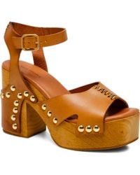 Go to NordstromPolished studs provide a perfect contrast to the wood-grain platform of an ankle-strap sandal that exemplifies modern edge. Color: black