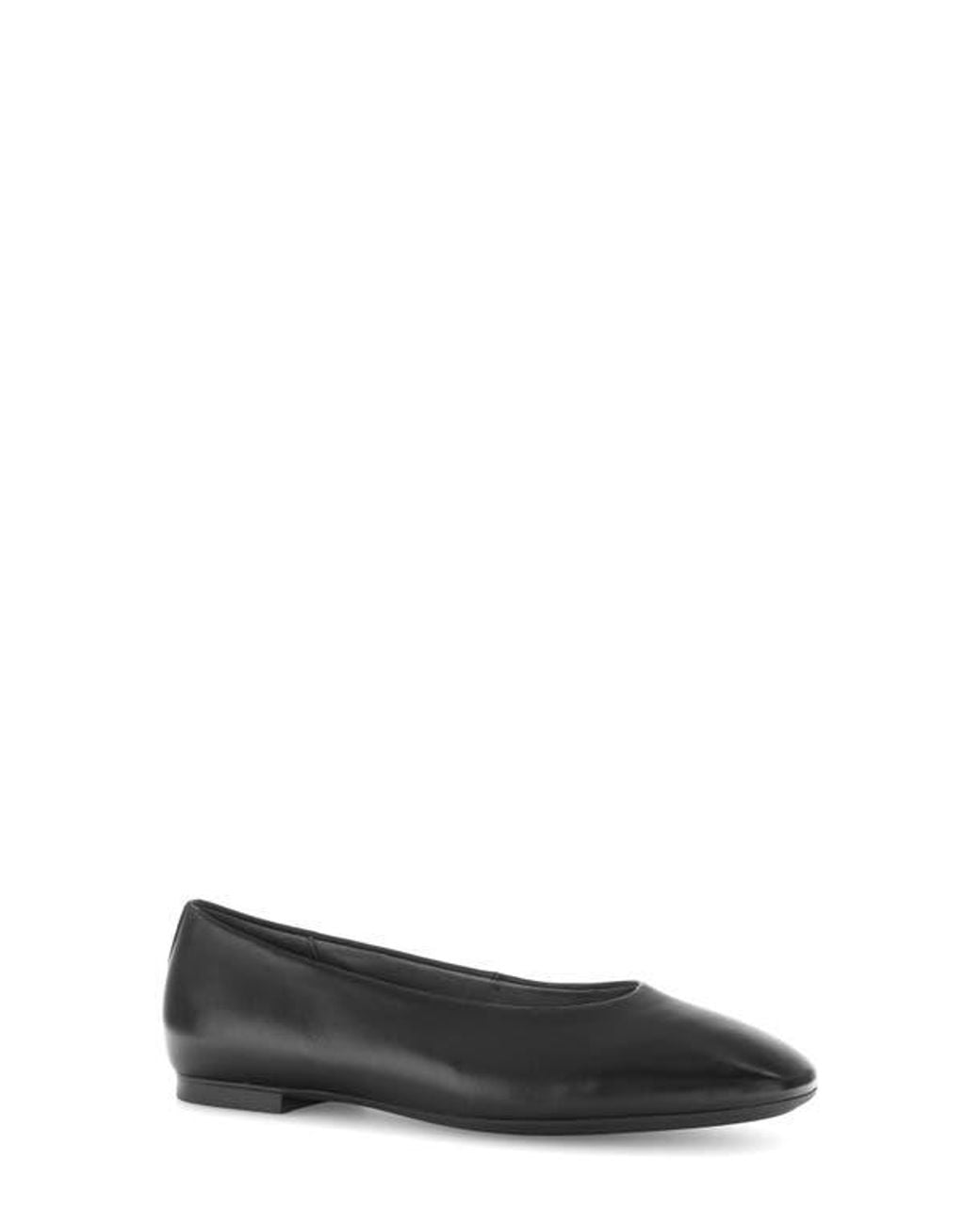 The classic ballet flat gets a modern update with a square toe and leather composition. Color: black