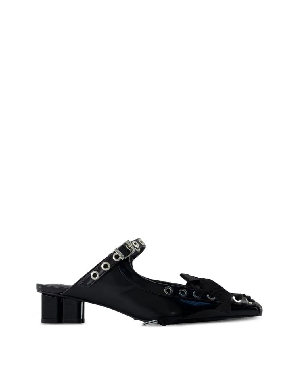 Black eyelets pointed tip buckle-strap Size: 36. Gender: Female. Material:Fabric/Fabric/Rubber. Color: black