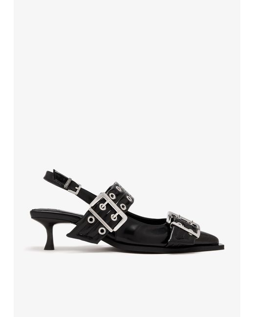 A cool and contemporary option that you'll be wearing season after season. Crafted in innovative Oleatex™ material, they feature large metallic buckles with eyelet details and a sculptural kitten heel. Color: white