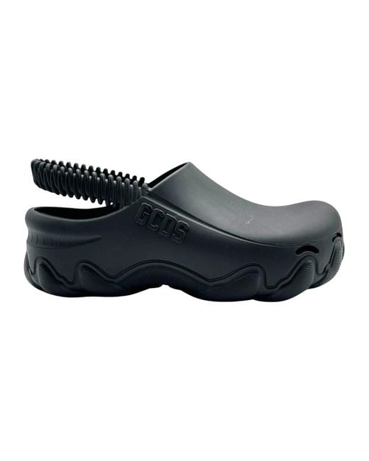 Gcds Clogs combine a bold, futuristic silhouette with a sculptural sole, perfect for adding an urban twist to everyday looks. Key attributes: Black | Nero | Synthetic material | 3D Gcds logo on side | Clog design with rounded toe | Sculptural sole with wavy details | Voluminous, bold silhouette | Dimensions & fit: Practical, comfortable fit Color: blue