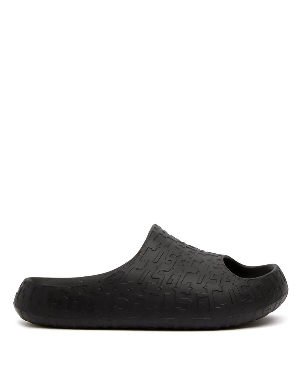 Black monogram pattern slip-on style open toe moulded footbed rubber sole Size: 38. Gender: Unisex. Material:Rubber/Rubber/Rubber. Color: black