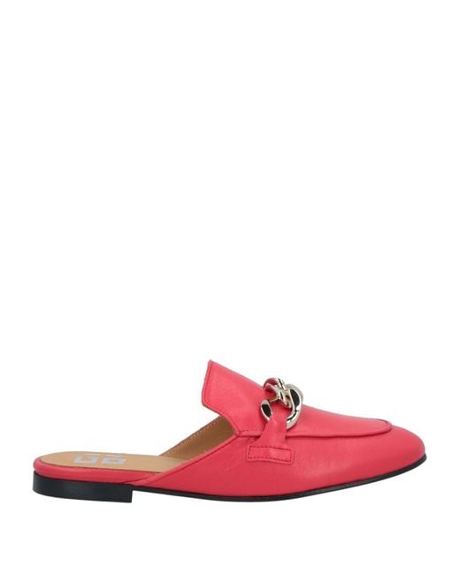 Leather, metal applications, solid color with appliqués, leather lining, round toe, flat, rubber sole, contains non-textile parts of animal origin, mules , Color: Red , Size: 6