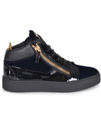 Go to FARFETCHGiuseppe Zanotti's leather high-top sneakers took the footwear world by storm. Loved by sportswear and fashion fans alike, this black pair of high-top sneakers is detailed with Cuban-link laces and gold-toned zips. Accented