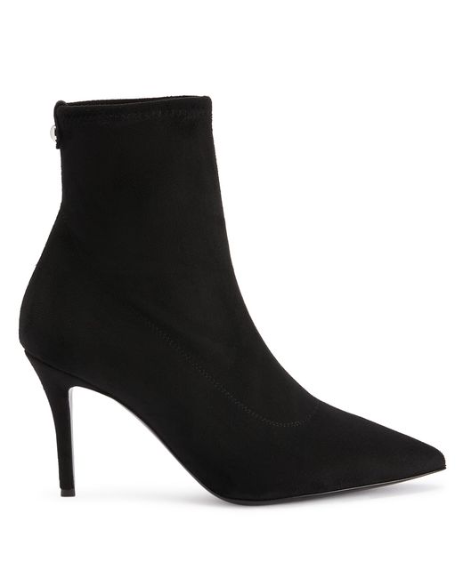 Black stretch fabric. Signature. 90 mm heel. Leather sole with logo. Made in Italy.