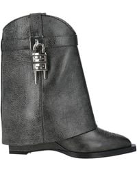 Go to YOOXGIVENCHY. boots, pebbled-leather, plain color with appliqués, brand logo, embellished, leather lining, pointed toe, wedge heel, leather sole, contains non-textile parts of animal origin. 100% Bull skin. Color: gray