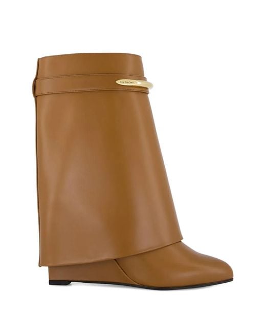 Light brown ankle height gold-tone hardware strap detail wedge heel Size: 38.5. Gender: Female. Material:Calf Leather/Calf Leather/Calf Leather.