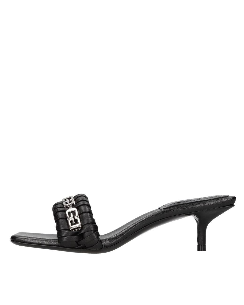 Leather mules. Logoed decorative chain. Logoed leather inner upper. Logoed leather outer sole. Color: black