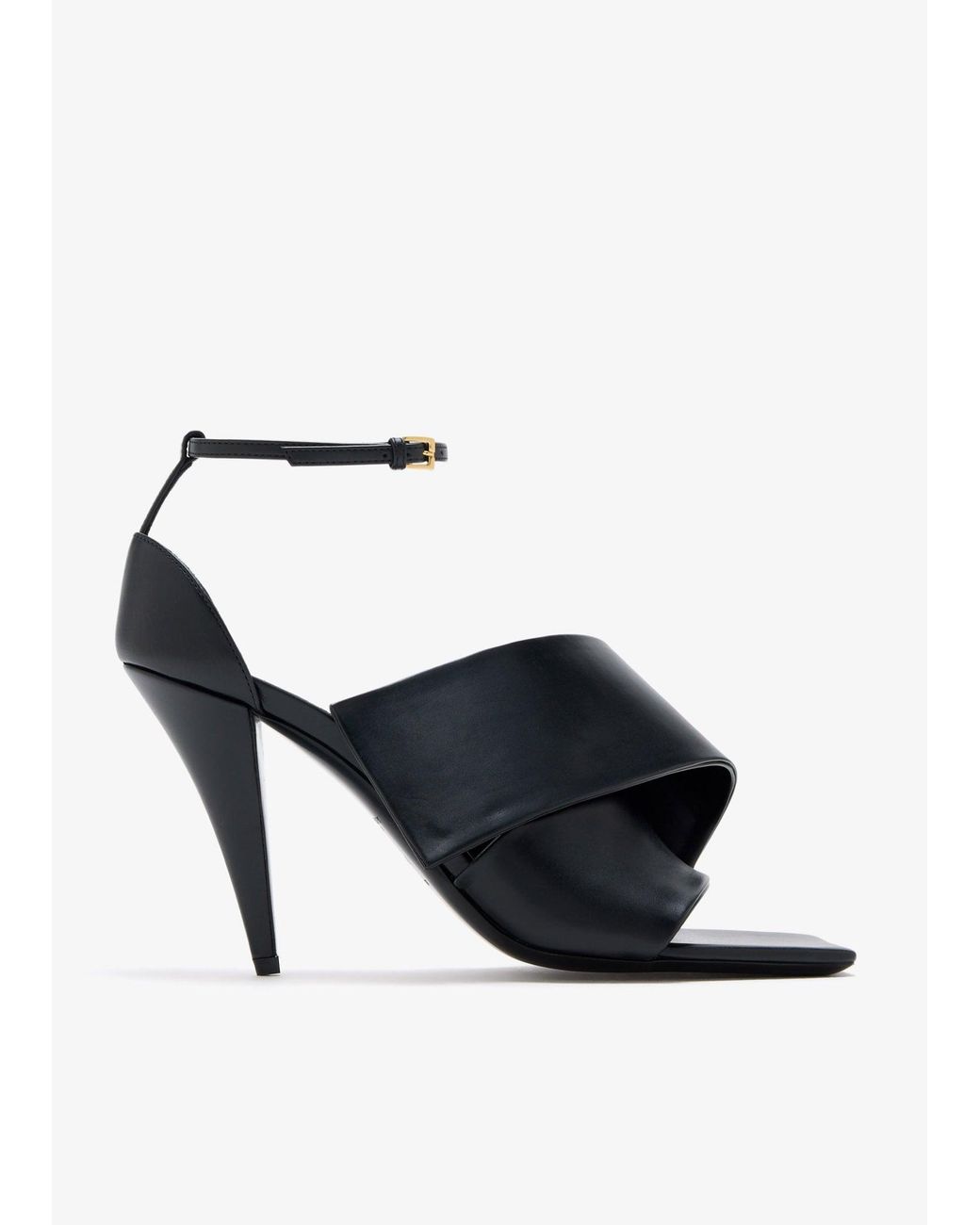 Defined by their modern square toe and elegant upper, these sandals will masterfully carry you from season to season. In supple calf leather, they are finished with adjustable ankle straps for a secure fit. Color: black