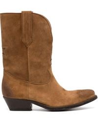 Golden Goose Women's Brown 'Embroidered Star' Suede Boots With Stacked Heel