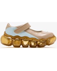 Go to FARFETCHWhite satin bow bubble sole slip-on design knitted upper Size: 36. Gender: Female. Material:Polyester/Rubber/Fabric. Color: natural