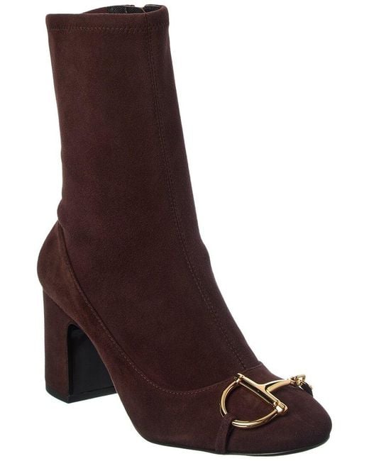 About The Brand: Eclectic And Coveted. Italian Luxury Redefined. Please Note: Size Selections Are European. For Us Conversions, Please Reference Size Chart. Based On Feedback From Members, This Item Typically Runs Large. We Suggest Sizing Down. Made In Italy Half Horsebit Suede Bootie In Dark Brown Suede And Light Fine Gold Hardware With Horsebit Detail Inner Side Zip-Up Closure Lightly Padded Leather Insole Smooth Leather Sole 3In Heel 6.5In Shaft 9.5In Boot Circumference Please Note: All Measurements Are Approximate And Were Taken From A Size 37; Slight Variations May Occur. Our Products Are 100% Genuine. In Some Cases We Purchase Merchandise From Trusted Independent Suppliers And Not Directly From The Brand Owner. In All Cases We Stand By The Authenticity Of Every Product Sold On Our Site. Color: brown