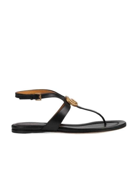 Black G-clip toe sandals Gold tone fittings Double G Flat bottom