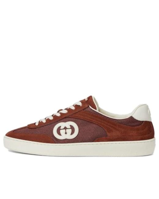 Shop the Gucci Interlocking Suede 'Red White'. Upgrade your sneakers collection today! Closure:lacing. Toe type:round toe. Color: brown