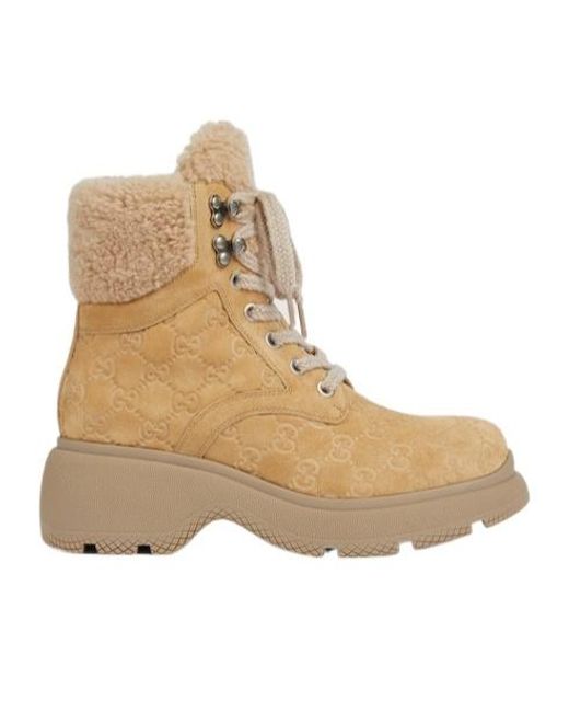 * Beige GG suede * Merino wool lining * Rubber sole * Lace-up closure * Low heel * Height: 1.3' * Made in Italy Color: natural