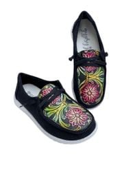 Go to ShopSimonGet your daily steps in with these adorable sneakers.Round toe slip-on sneakers with lace detail in plaid print. Features a padded insole and white rubber outsole for comfort. Canvas upper. Color: pink