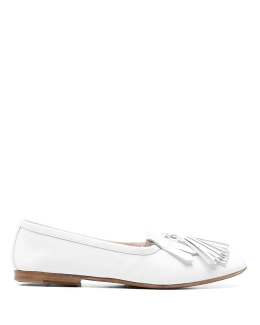 Smooth Leather Loafers With Tassels Shoes - White