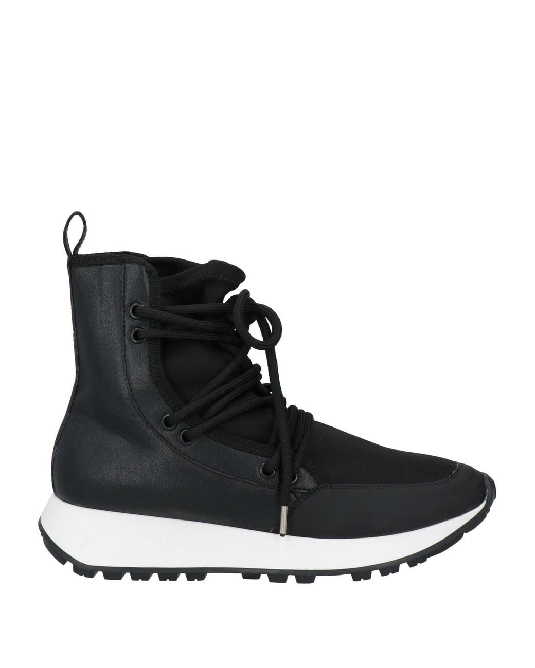 Lace-up ankle boots, leather, jersey, solid color, no appliqués, leather lining, lace-up, round toe, flatform, contains non-textile parts of animal origin, large sized , Color: Black , Size: 6