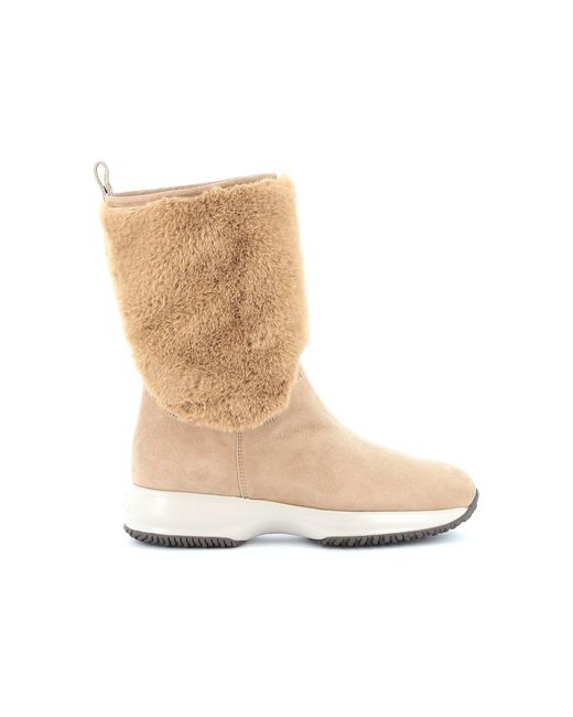 The Hogan Interactive Bootie is crafted in beige suede and leather, featuring a Western-inspired design. This boot combines luxurious materials with a chic silhouette, offering both style and comfort. Color: natural