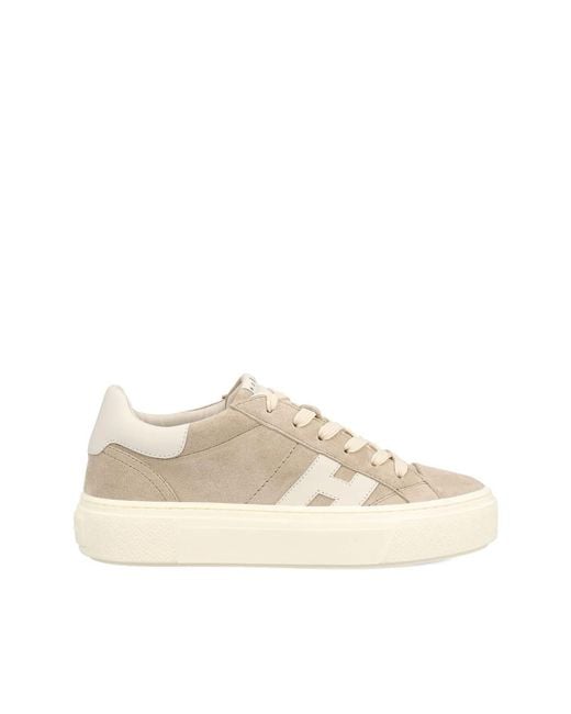 Beige suede side h detail lace-up fastening rubber sole Color: natural