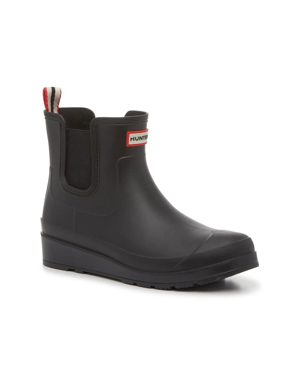 Stay dry in style by slipping into the Tabitha rain boots from Hunter. This waterproof pair sports a Chelsea-inspired design and a wedge heel for a bit of lift. Complete with a treaded sole that adds traction to slippery steps. Click here for Boot Measuring Guide. Color: black