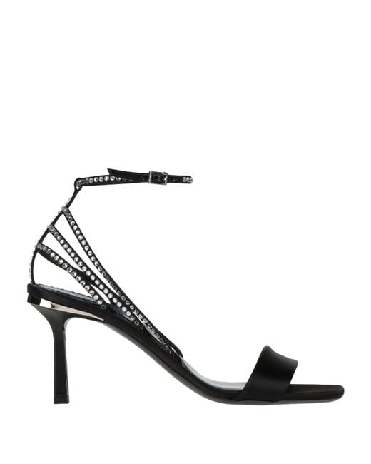 Sandals, satin, solid color with appliqués, crystals, buckle-fastening ankle strap, square toe, stiletto heel, leather lining, leather sole, contains non-textile parts of animal origin, go extra glam with chic party accessories for your next event or night out , Color: Black , Size: 9