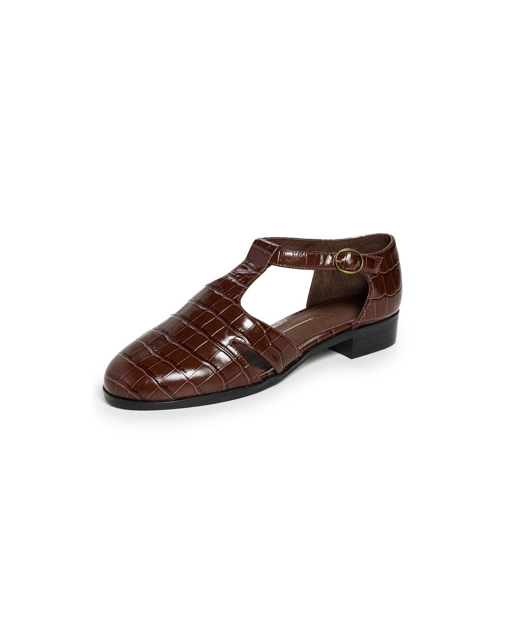 Upper: Cowhide. Croc-embossed finish. Lightly padded footbed. Lining: Pigskin. Buckle ankle strap. Round toe. Rubber sole. Imported, China. This item cannot be gift-boxed. Measurements: Heel: 0.75in / 20mm Color: brown