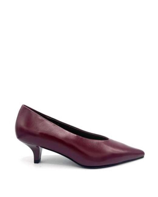 Jeannot Decolletè is a vernicetta pump that delivers a refined silhouette for formal and office occasions. Key attributes: Red | Burgundy | Vernicetta | Pumps silhouette | Dimensions & fit: Heel height: 55 mm | Composition & care: Vernicetta Color: purple