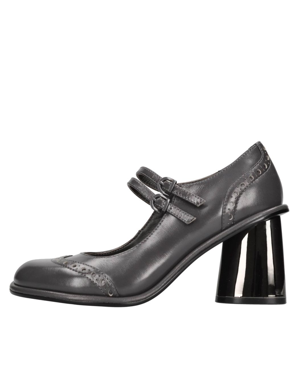Leather pumps. Leather upper. Rubber outer sole. Double strap with b Color: gray
