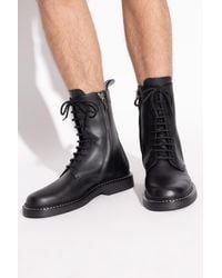 Go to YOOXCombat boots, suede, plain color, brand logo, lined in shearling, lace-up, round toe, square heel, rubber heel, lug sole, contains non-textile parts of animal origin. Leather. Color: brown