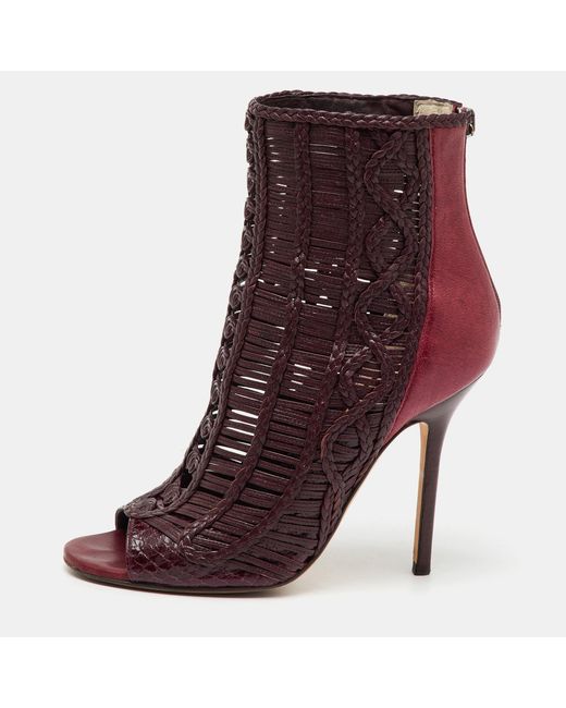 - Burgundy Braided Leather Java Peep Toe Ankle Boots