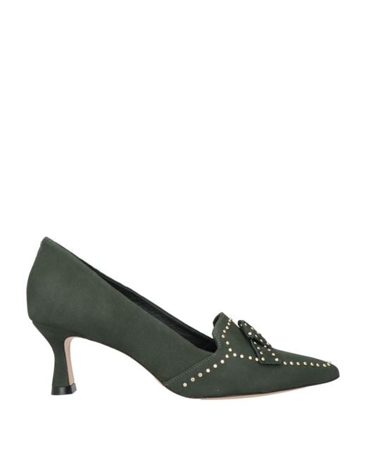 Pumps, nubuck, solid color with appliqués, studs, pointed toe, spool heel, leather lining, leather sole, contains non-textile parts of animal origin , Color: Dark green , Size: 6