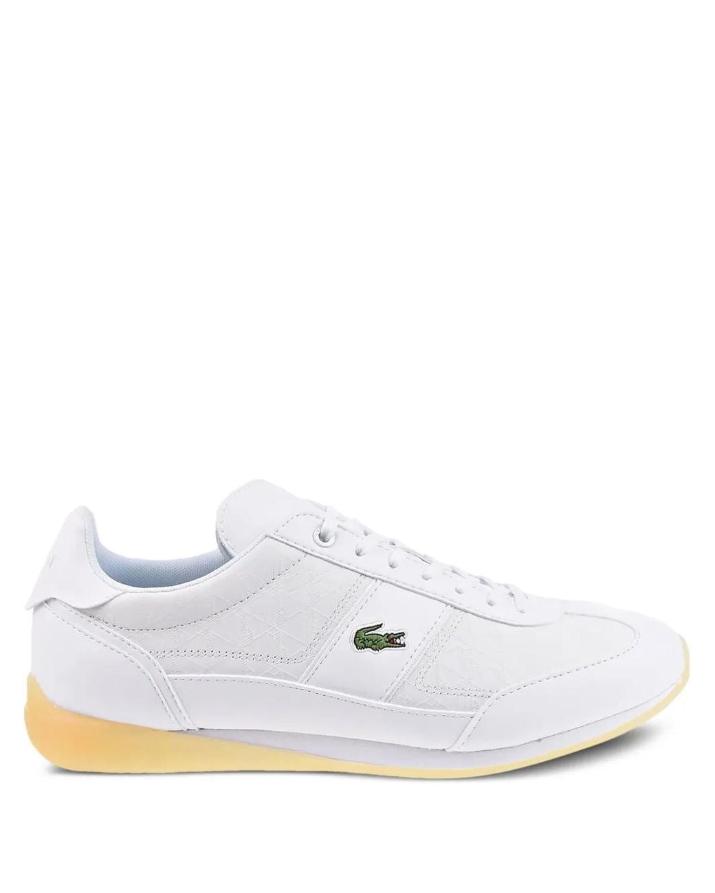 White leather upper lace-up fastening crocodile emblem textured panels cream sole These styles are supplied by a premium and authenticated sneaker marketplace. Stocking only the most sought-after footwear, they source and curate some of the most hard to find sneakers from around the world. Size: 7.5. Gender: Male. Material:Leather/Polyester/Polyethylene vinyl acetate (PEVA)/Rubber/Polyurethane. Color: white