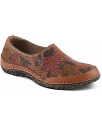 L'ARTISTE Women's Brown Libora-delite Handpainted Leather Floral Slip-on Shoes