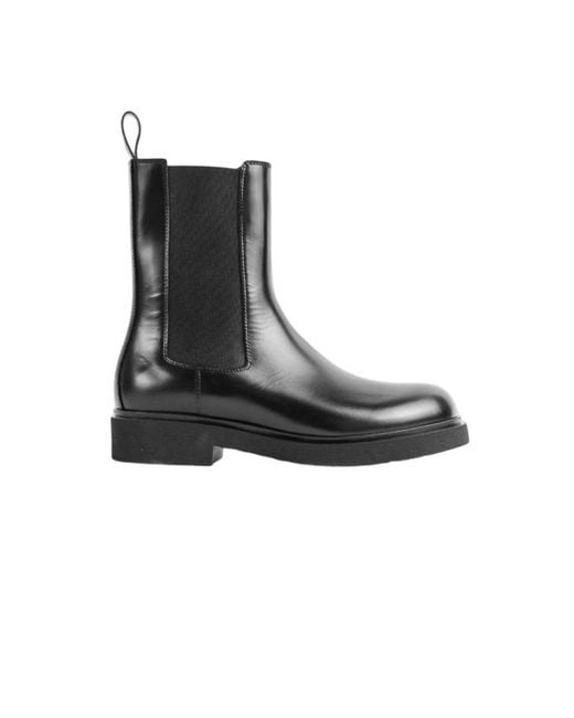 Chelsea boot in black leather. rubber sole. side elastic. back tongue.SpecificationValueSeasonFW24Composition100% CALF LEATHER. Color01 BLACKColor Code01BLACKMade InITALYISOITDepartmentWomenSectionSHOESSubsectionBOOTSSize InformationSHOES ITSize CodeIT Color: black
