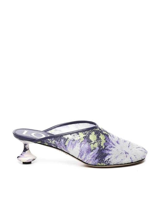 Mesh sandals with all-over sequin floral print, petal-shaped toe, lacquered toy, height, made in italy, color lilac Color: white